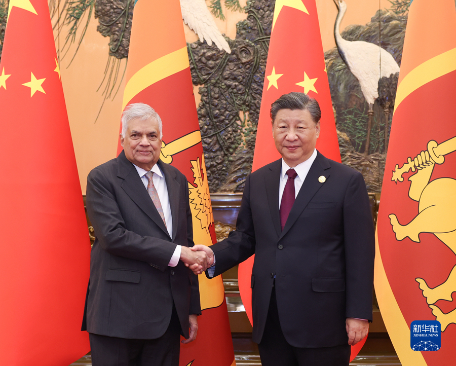 10月20日上午,國家主席習(xí)近平在北京人民大會堂會見來華出席第三屆“一帶一路”國際合作高峰論壇的斯里蘭卡總統(tǒng)維克拉馬辛哈。