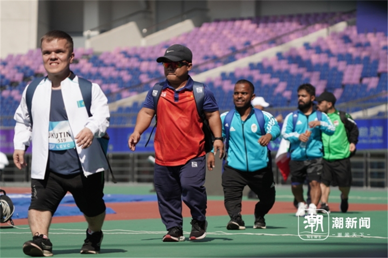 參加杭州亞殘運會田徑男子標(biāo)槍F41級的是7位身高均不到1米4的選手,他們背包魚貫而入黃龍體育場的時候,好像一支快樂的小分隊,場景瞬間切換進了童話王國。