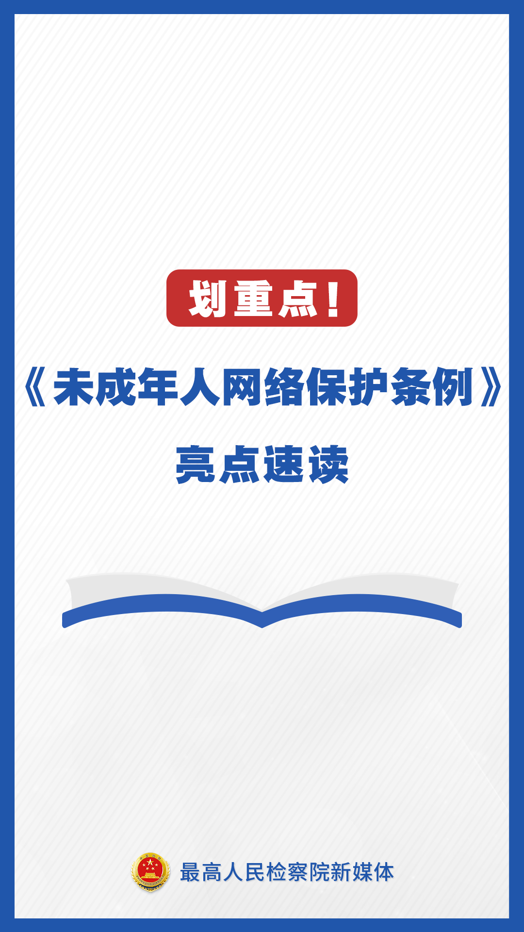 《未成年人網(wǎng)絡(luò)保護條例》來了!檢察君為你劃重點,速讀未成年人網(wǎng)絡(luò)保護新舉措!不得通過網(wǎng)絡(luò)對未成年人實施侮辱、誹謗等網(wǎng)絡(luò)欺凌行為;不得為未成年人提供游戲賬號租售服務;建立網(wǎng)絡(luò)直播發(fā)布者真實身份信息動態(tài)核驗機制……速速轉(zhuǎn)發(fā)擴散!