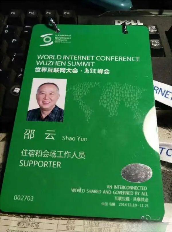 其中一條2014年的微博上,放著一張?zhí)貏e的工作證——這是邵云參與首屆世界互聯(lián)網(wǎng)大會的籌備工作時留下的?!笆讓檬澜缁ヂ?lián)網(wǎng)大會,前來參加展覽的還是支付寶、二維碼這些現(xiàn)在早就不稀奇的東西。那時候還沒有人臉識別,出入都要靠紙質(zhì)的工作證?!鄙墼苹貞?。