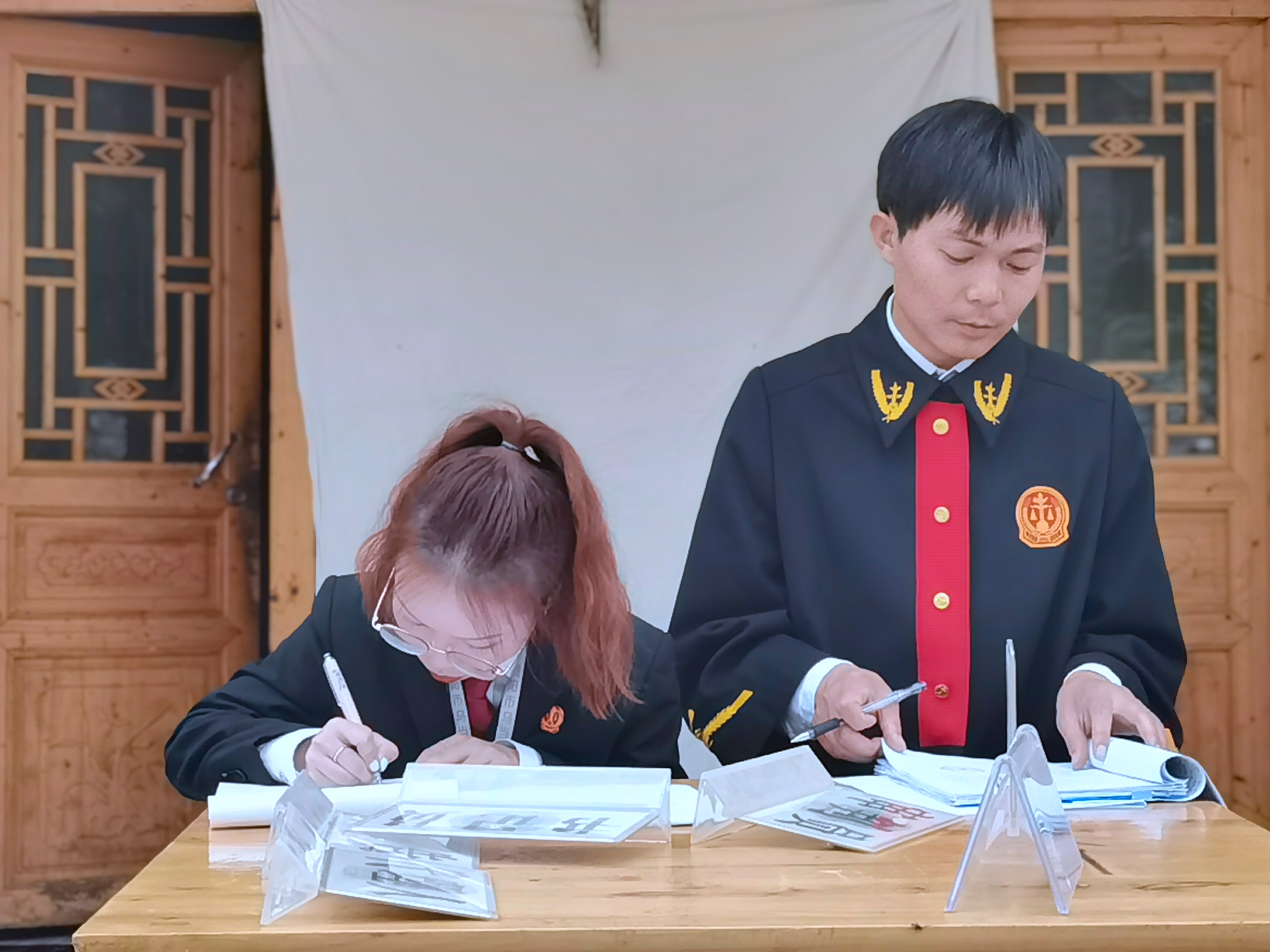 直到開(kāi)庭前夕,承辦法官還在堅(jiān)持做著被告的釋法析理工作,被告的態(tài)度從始至終無(wú)緩,仍表示不愿意到原告家參加庭審,法官對(duì)案件審理效果的擔(dān)憂直到所有訴訟參與人出現(xiàn)在了庭審現(xiàn)場(chǎng)方才散去。由此,國(guó)徽之下,法袍加身,飯桌一置,院壩圍坐,這件“家事”便在當(dāng)事人自家“飯桌”上攤開(kāi)來(lái)說(shuō)了,審理流程依序進(jìn)行......