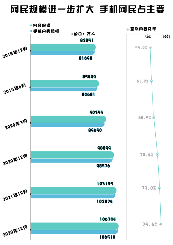 根據(jù)中國互聯(lián)網(wǎng)絡(luò)信息中心(CNNIC)發(fā)布的第51次《中國互聯(lián)網(wǎng)絡(luò)發(fā)展?fàn)顩r統(tǒng)計(jì)報(bào)告》(以下簡稱:《報(bào)告》)顯示,截至2022年12月,我國網(wǎng)民規(guī)模達(dá)到10.67億,互聯(lián)網(wǎng)普及率達(dá) 75.6%?;ヂ?lián)網(wǎng)絡(luò)發(fā)展呈現(xiàn)哪些特征呢?以下數(shù)據(jù)為您解讀。