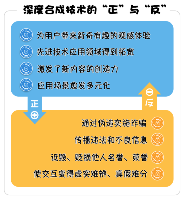 深度合成技術(shù)是一柄“雙刃劍”,其作為人工智能內(nèi)容合成技術(shù),近些年風(fēng)頭正盛。此技術(shù)正被應(yīng)用于新聞傳媒、教育、電子商務(wù)等諸多領(lǐng)域。若正確使用該技術(shù),不僅可以使應(yīng)用場(chǎng)景更加多元化,還可激發(fā)新的創(chuàng)造,造福社會(huì)。若惡意使用該技術(shù),則會(huì)嚴(yán)重?fù)p害人民群眾合法權(quán)益,嚴(yán)重威脅社會(huì)信息安全。