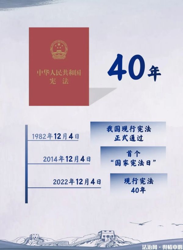 1982年12月,第五屆全國人民代表大會第五次會議審議通過了憲法修正案草案,現(xiàn)行憲法正式誕生。如今,現(xiàn)行憲法已實施四十年。四十年間,隨著法治建設(shè)的不斷推進,憲法的地位顯得尤為重要。我國在2014年12月4日設(shè)立了“國家憲法日”,旨在增強憲法意識,弘揚憲法精神。