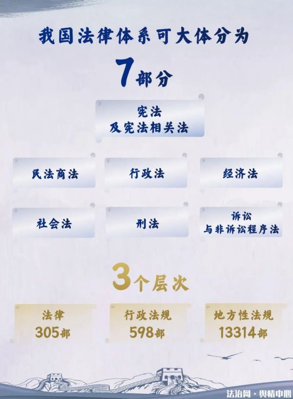 憲法具有高的法律效力,是法律法規(guī)和制度體系的源頭。我國的法律體系是由憲法統(tǒng)領(lǐng)下的各法律部分構(gòu)成。據(jù)國家法律法規(guī)數(shù)據(jù)庫查詢數(shù)據(jù),截至2022年10月30日,我國現(xiàn)行有效的法律有305部,行政法規(guī)598部,地方性法規(guī)13314部。在以憲法為總依據(jù)的前提下,我國法律數(shù)量不斷增加,立法機制也在不斷完善。