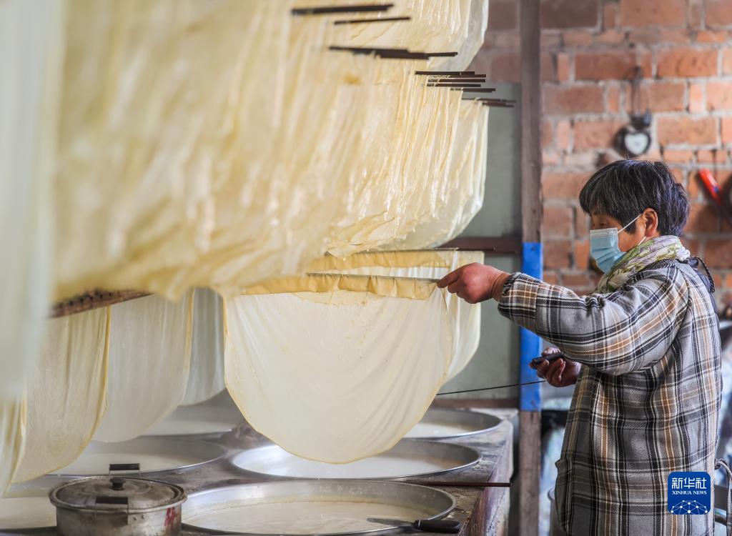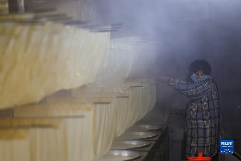 春節(jié)臨近,浙江省諸暨市安華鎮(zhèn)的傳統(tǒng)年貨——豆腐皮迎來(lái)銷售旺季。村民加緊制作豆腐皮,供應(yīng)節(jié)日市場(chǎng)。