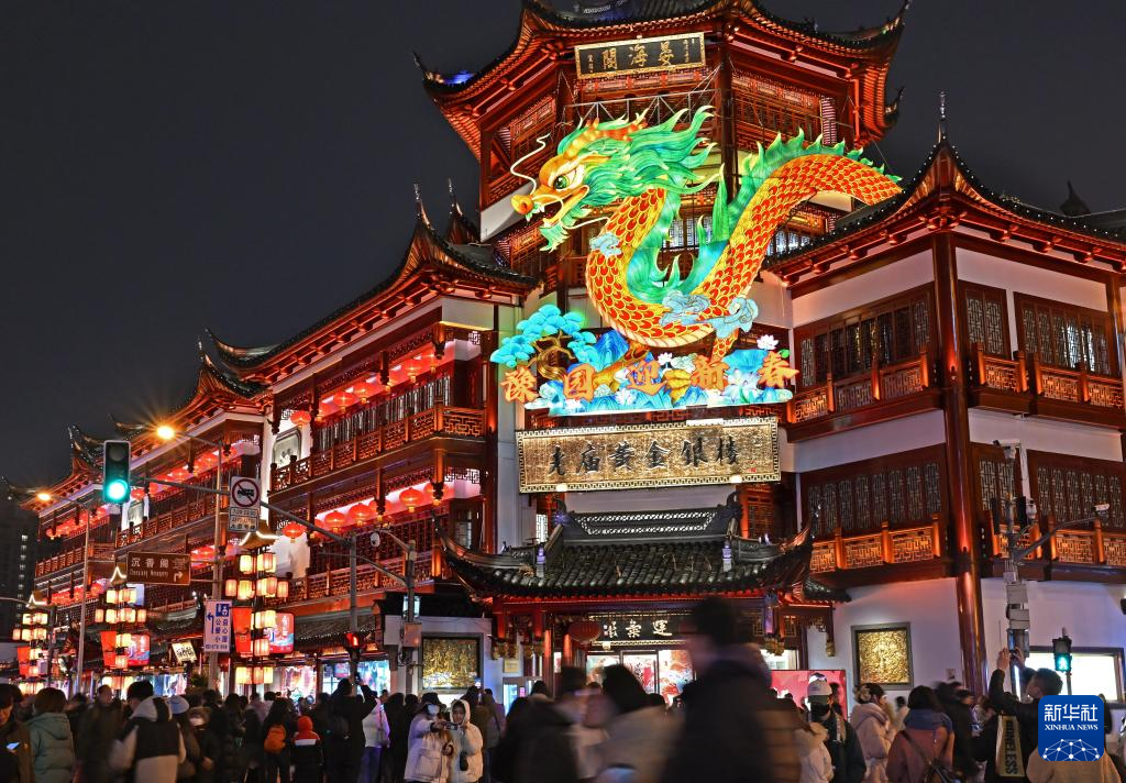 當(dāng)日,2024上海豫園民俗藝術(shù)燈會(huì)正式亮燈。今年豫園燈會(huì)續(xù)寫“山海奇豫記”,以“海經(jīng)篇”為主題,生肖龍燈、海底世界、魚群起舞、奇幻仙境等場(chǎng)景讓游客在燈火絢爛的國(guó)風(fēng)幻境中喜迎龍年新春。