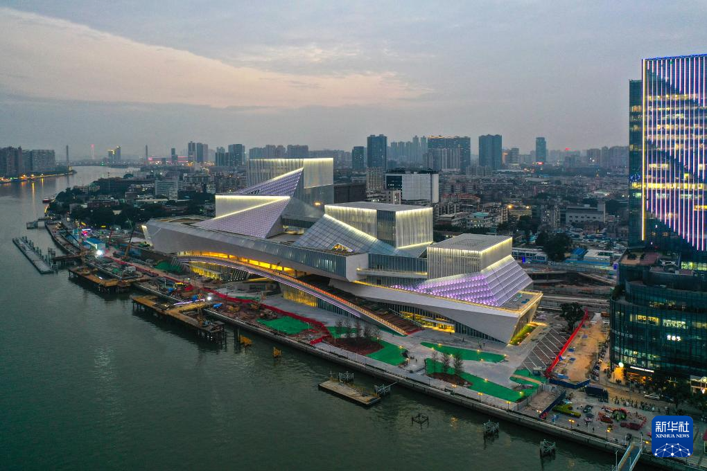 由中建三局承建的白鵝潭大灣區(qū)藝術中心進行亮燈測試(1月31日攝,無人機照片)。白鵝潭大灣區(qū)藝術中心位于廣州珠江白鵝潭,該項目集廣東美術館、廣東非物質文化遺產展示中心、廣東文學館“三館合一”,目前已進入室內裝修工程收尾階段。