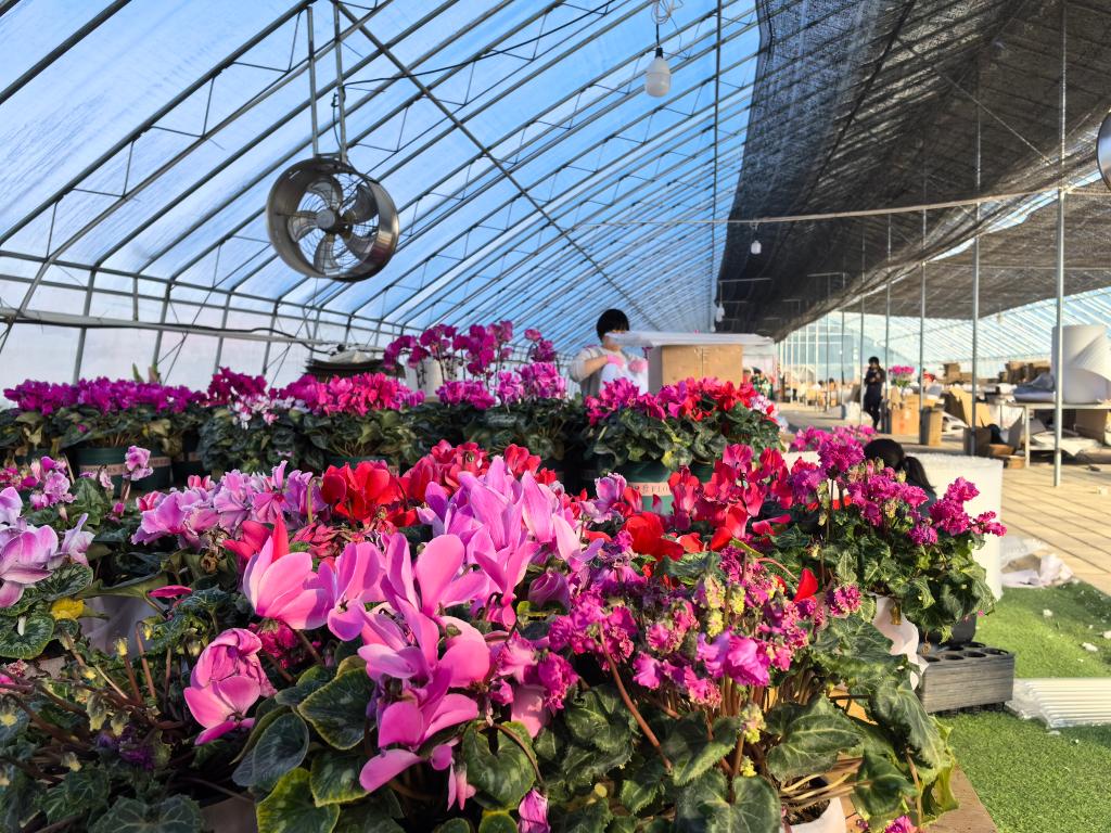 走出居住的小屋,步入寬敞、明亮的溫室大棚,棚內(nèi)密密匝匝地?cái)[放著蝴蝶蘭、仙客來、小麗花等年宵花。每走幾步,李有昊就要和正在打包、整理花卉的大姐交代幾句,忙得不亦樂乎。