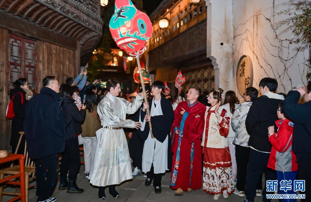 嬉魚燈會(huì)、街舞表演、萬物可敲、水上打鐵花……一系列兼具時(shí)尚與傳統(tǒng)的節(jié)目串聯(lián)起浙江省桐鄉(xiāng)市濮院時(shí)尚古鎮(zhèn)新年的起承轉(zhuǎn)合。2024年1月1日起,“時(shí)尚濮院·中國年”啟動(dòng),活動(dòng)將持續(xù)至元宵節(jié)。
