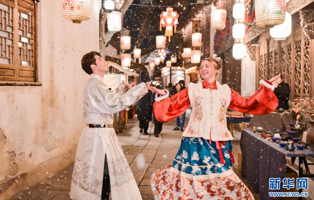 北橫街開啟“今日有雪”活動(dòng)。新華網(wǎng)發(fā) 濮院時(shí)尚古鎮(zhèn)供圖
