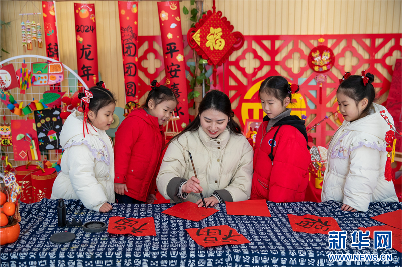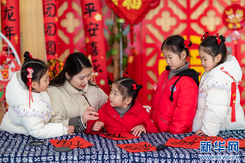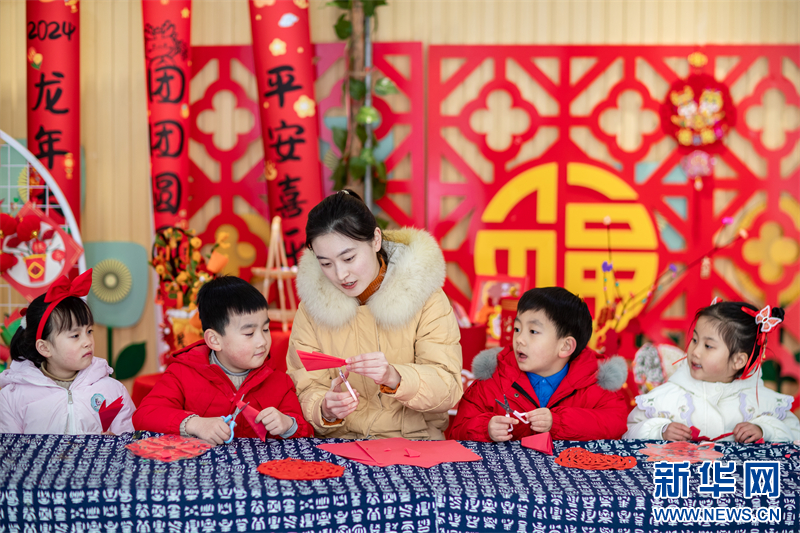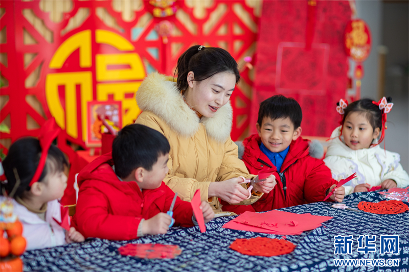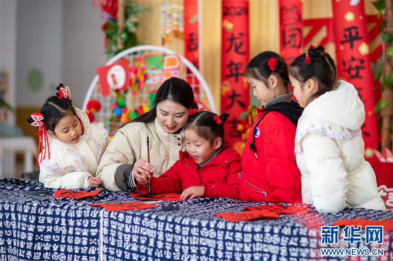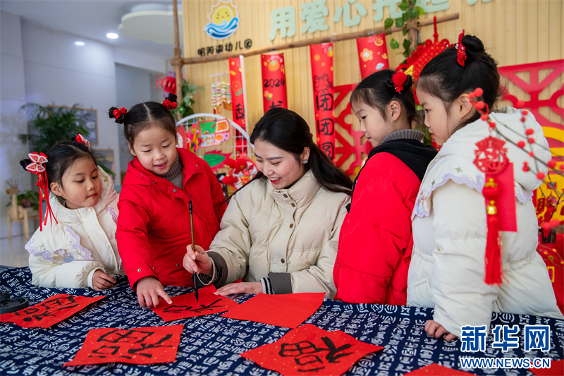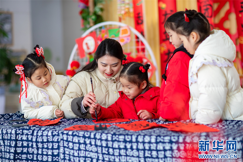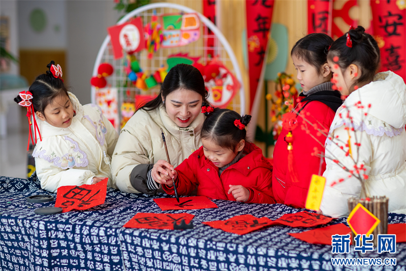 近日,江蘇省興化市昭陽湖幼兒園開展各項(xiàng)迎新春活動(dòng),孩子們?cè)诶蠋煹闹笇?dǎo)下寫“福”字、剪窗花,喜迎春節(jié)的到來。(沙佳儀 報(bào)道員:周社根)