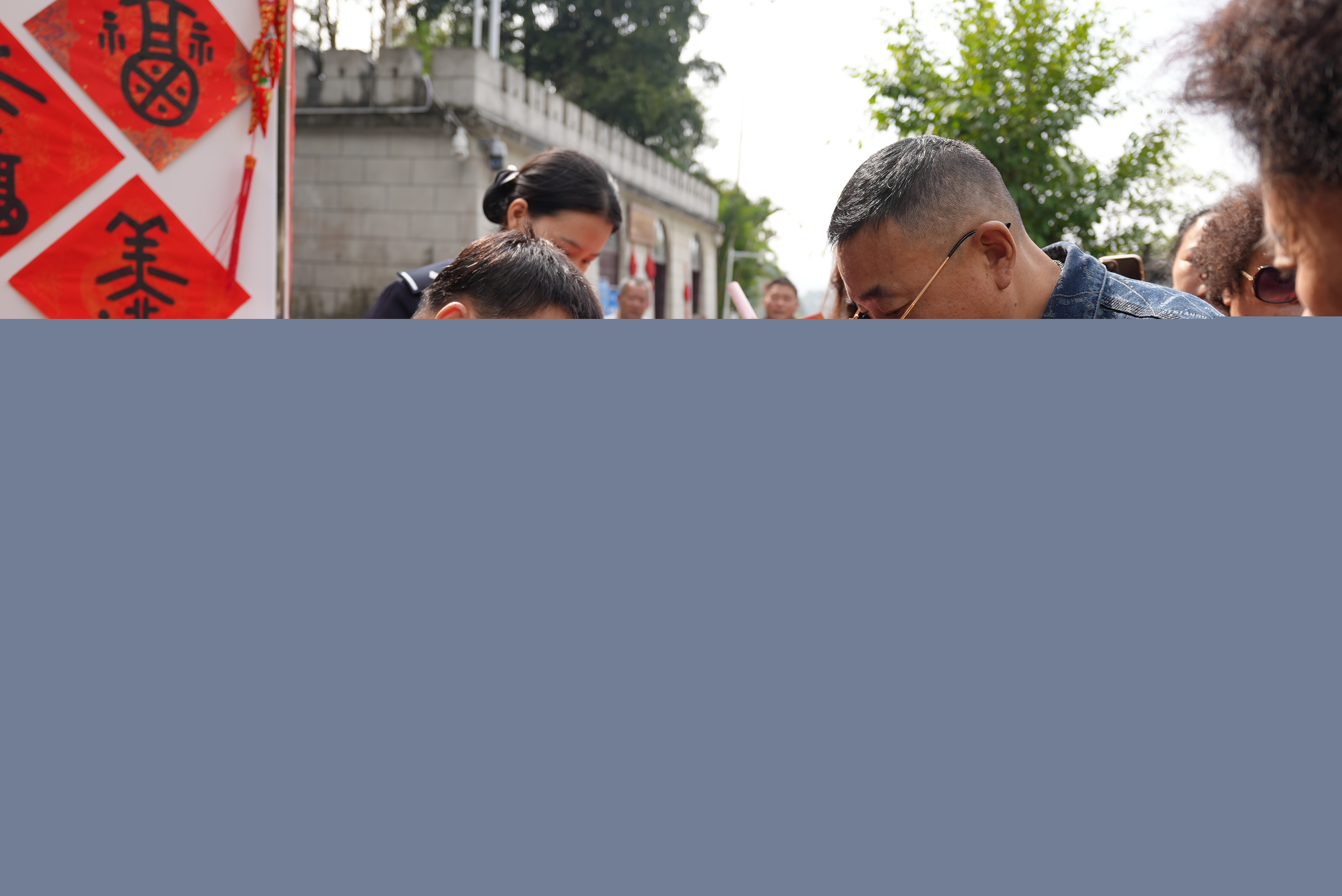 圖為民警在友誼關關樓前手寫福字贈送出入境旅客。陳榮佳 攝