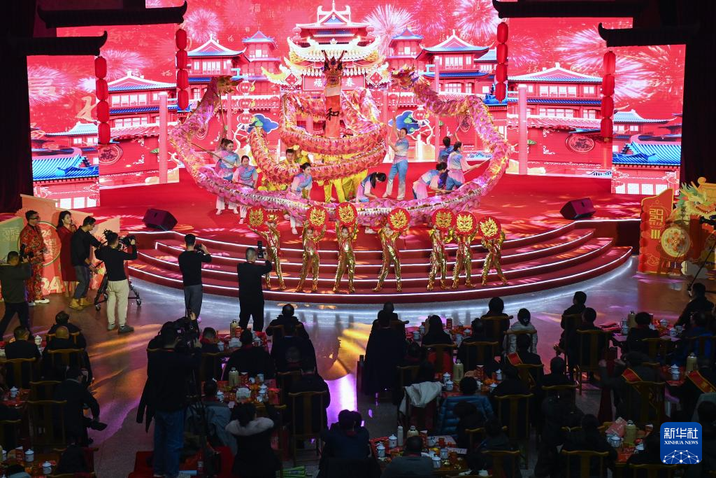 2月4日,來自湖州長興縣的農民進行鴛鴦龍表演。
