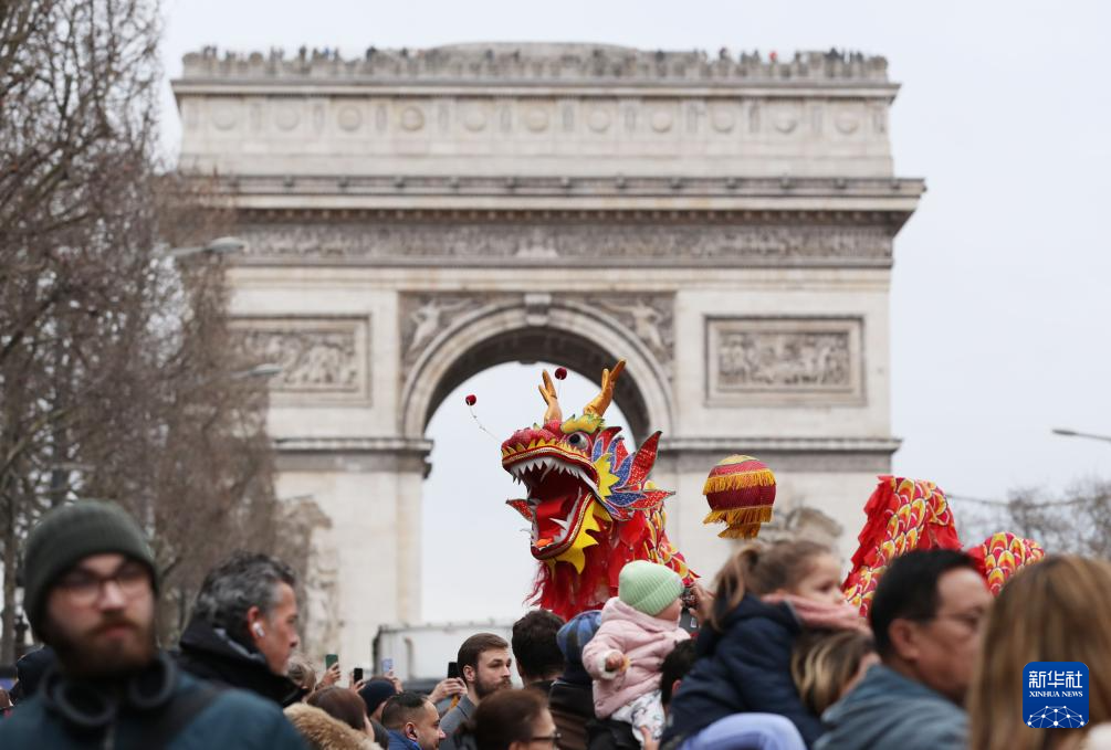 巴黎香榭麗舍大街舞動中國龍慶祝新春