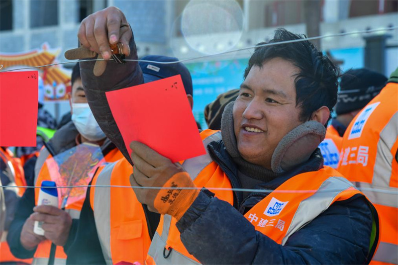 中建三局濟南市醫(yī)療康養(yǎng)綜合服務(wù)基地建設(shè)項目部舉辦“情系農(nóng)民工 溫暖迎新春”活動。新華社記者朱崢 攝