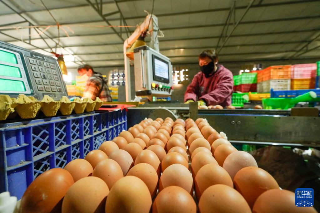2月7日,河北省遵化市東新莊鎮(zhèn)一家蛋雞養(yǎng)殖場的工人在分揀雞蛋準備外運。