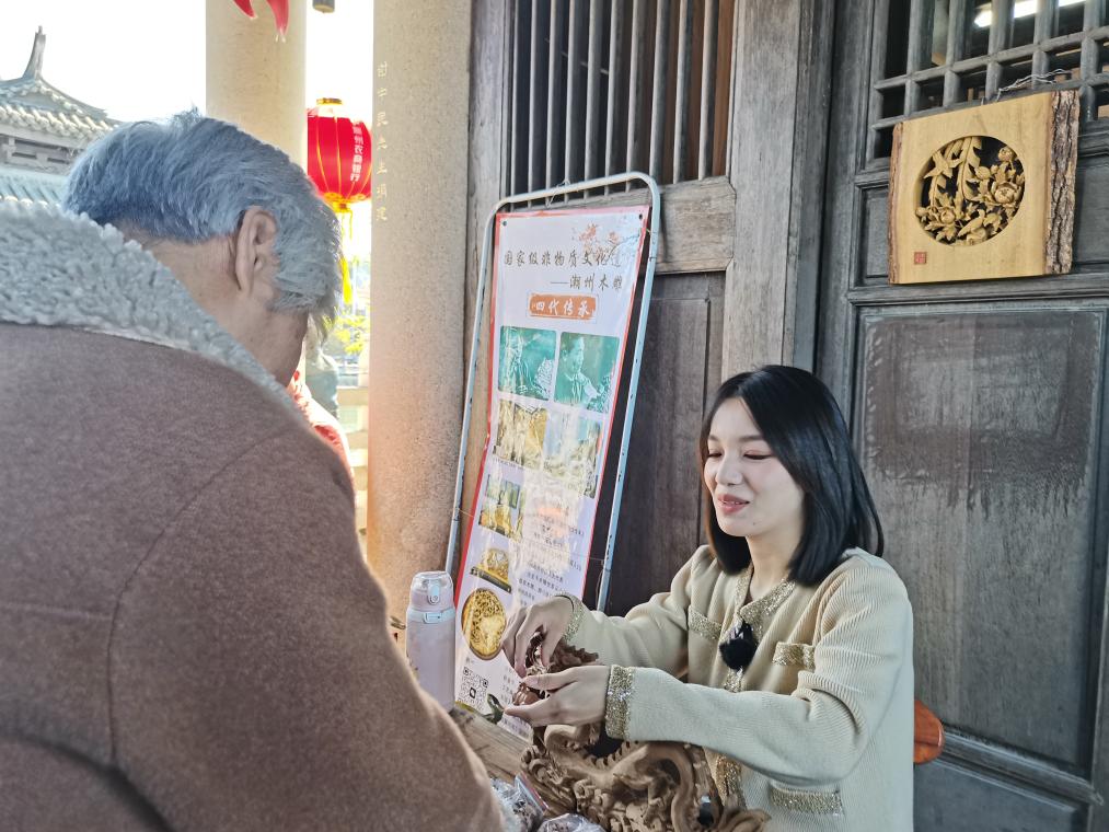 既有傳統(tǒng)的木雕蝦蟹簍,也有富有生活氣息的木雕頭簪、木雕“十二生肖”玩偶……潮州木雕非遺傳承人、“90后”陳嘉的展位上,木雕展品琳瑯滿目。她說,如今關(guān)注非遺的游客特別是年輕人越來越多,“我們現(xiàn)在對傳承非遺越來越有信心,歡迎大家到古城來過大年!”