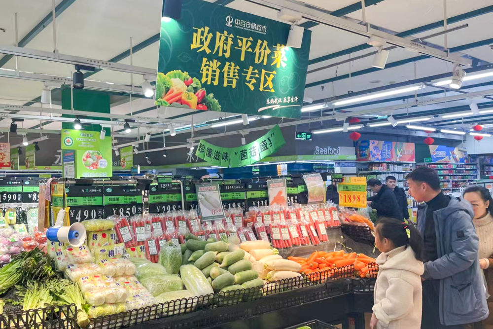 為積極應(yīng)對(duì)近期雨雪冰凍天氣影響,確保武漢市春節(jié)期間蔬菜市場(chǎng)價(jià)格平穩(wěn),保障市民基本生活需求,2月8日至2月12日期間,武漢市政府部署在武商、中百、中商三大商超130余家門店設(shè)置政府平價(jià)菜銷售專區(qū),銷售大白菜、包菜、白蘿卜、胡蘿卜、土豆5種蔬菜。