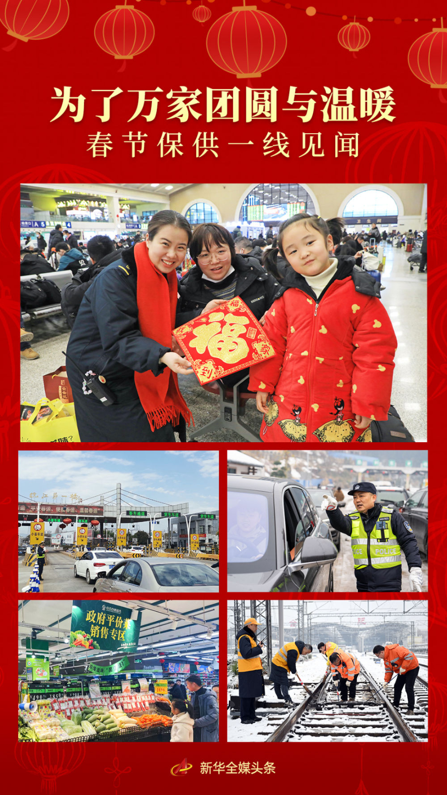 春節(jié)是中華民族最為隆重的節(jié)日。為了萬家的團(tuán)圓與溫暖,各地各部門積極行動(dòng),許多干部、職工奮戰(zhàn)在保供第一線:有的千方百計(jì)讓群眾回家路更便捷,有的“24小時(shí)待命”確保用水、用氣、用電有保障,有的全力保障生活必需品供應(yīng)充足……