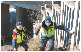 線路巡查完返程路上,路邊一輛電動三輪車側翻在道路左側土溝里,一側地上躺著一個人。徐鵬和民警韓壹朝立即下車救援幫助。原來陳大爺騎著電動三輪車回家,因道路結冰,不小心連人帶車側翻到一旁的土溝里。民警確認老人身體只受了點擦傷后,驅車將老人送回了家。
