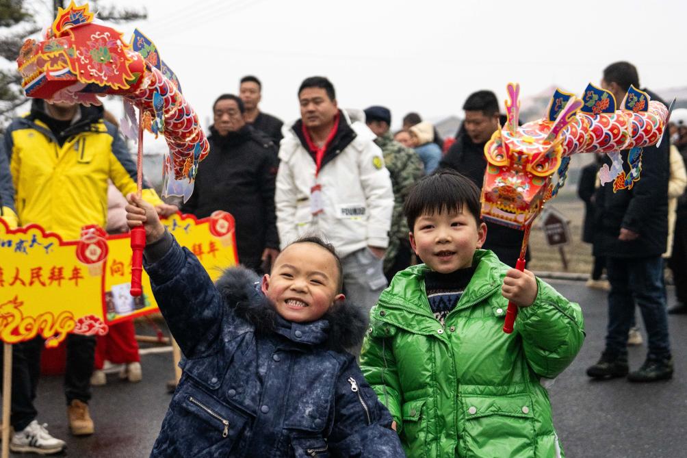 2月4日,在湖南省益陽市赫山區(qū)衡龍橋鎮(zhèn)衡龍橋村,小朋友參加迎新春活動(dòng)。新華社記者 陳思汗 攝