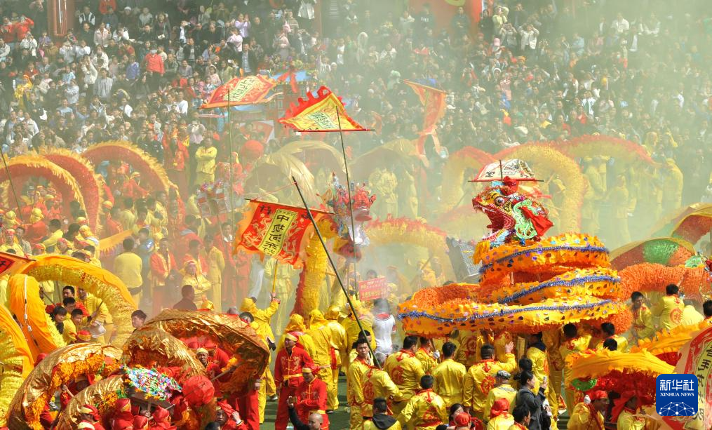 2月19日,人們參加貴州省畢節(jié)市百里杜鵑管理區(qū)百納鄉(xiāng)舞龍巡游表演。新華社發(fā)(李華 攝)