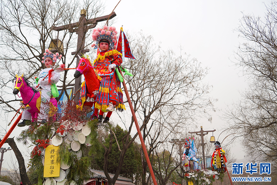 2月19日,在西安市臨潼區(qū)大唐華清城廣場,西安市非物質(zhì)文化遺產(chǎn)項目“背芯子”表演。王三合攝