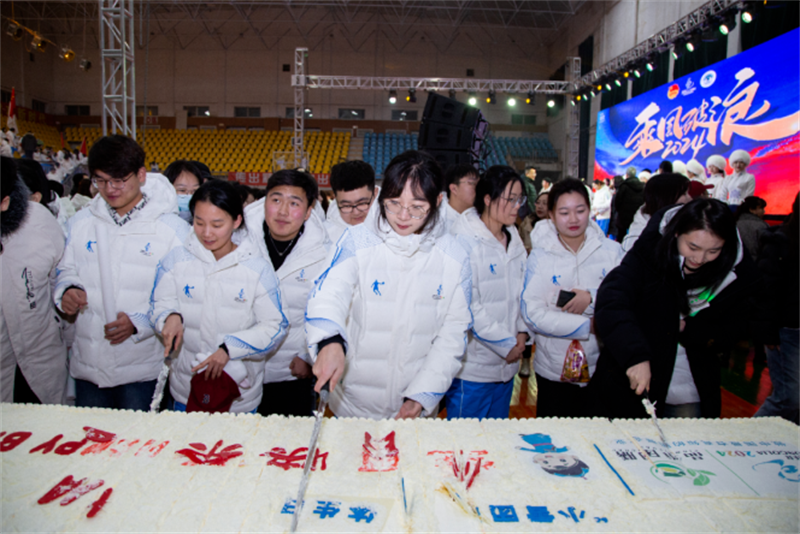 為即將到來(lái)的新年和冬運(yùn)增添一份歡樂(lè)和喜慶的氛圍,呼倫貝爾學(xué)院精心策劃“迎新春生日會(huì)”活動(dòng)。這種特殊的慶祝方式不僅能讓小雪團(tuán)們感受到冬運(yùn)的激情與活力,也能夠體驗(yàn)到生日會(huì)的溫馨與喜悅?!皩?duì)于大多數(shù)志愿者來(lái)說(shuō),這是他們第一個(gè)不在家鄉(xiāng)過(guò)的春節(jié),雖不能與家人團(tuán)聚,但可以在學(xué)校這個(gè)‘大家庭’度過(guò)一個(gè)特殊的‘十四冬’年?!焙魝愗悹枌W(xué)院負(fù)責(zé)老師說(shuō)。