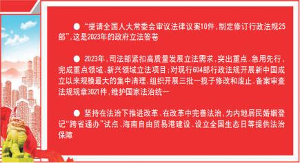 “提請全國人大常委會(huì)審議法律議案10件,制定修訂行政法規(guī)25部”,這是2023年的政府立法答卷?!斗ㄖ稳請?bào)》記者在采訪中發(fā)現(xiàn),最先吸引代表委員注意的法治成績就來自這句話。