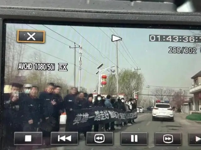 上午7時40分,護(hù)送烈士英靈的車隊緩緩從房山區(qū)殯儀館懷念堂前出發(fā)。長長的車隊在兩位烈士生活過的城區(qū)村落穿過,這里有他們眷戀的家鄉(xiāng)人民和熱土。