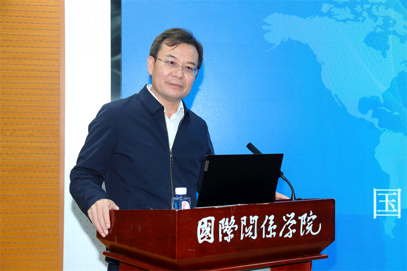 國(guó)際關(guān)系學(xué)院黨委書記幸明軍致辭。國(guó)際關(guān)系學(xué)院供圖