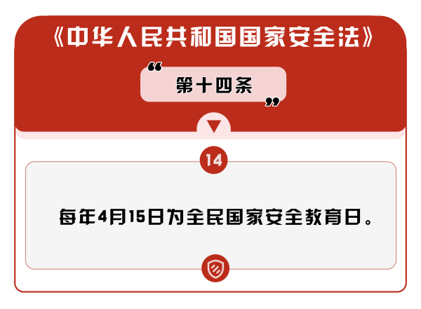 2015年7月1日,全國人大常委會(huì)通過的《中華人民共和國國家安全法》第十四條規(guī)定,每年4月15日為全民國家安全教育日。