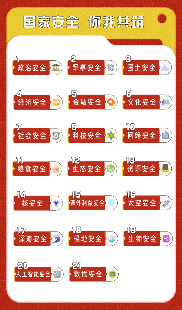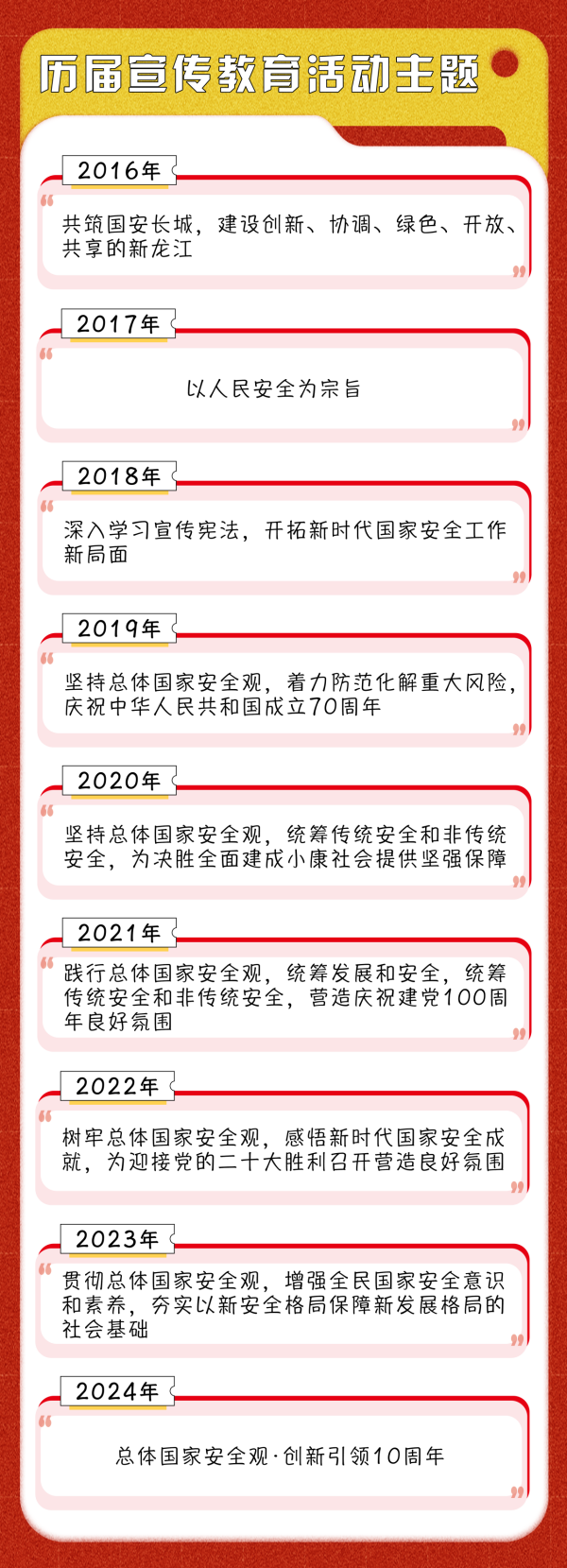 2024年4月15日,是第九個(gè)全民國家安全教育日,今年的活動(dòng)主題是“總體國家安全觀·創(chuàng)新引領(lǐng)10周年”。