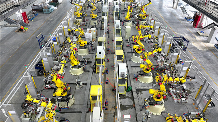 在安徽翊洋汽車(chē)零部件有限公司,機(jī)械臂正在加工汽車(chē)零部件
