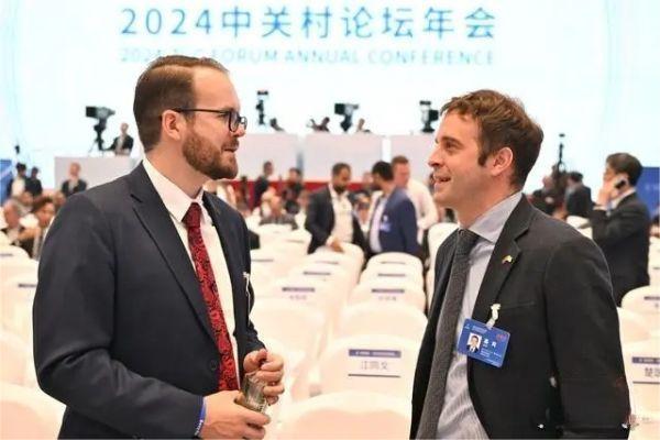 4月25日,2024中關(guān)村論壇年會(huì)在北京開幕。圖為與會(huì)嘉賓會(huì)前交流
