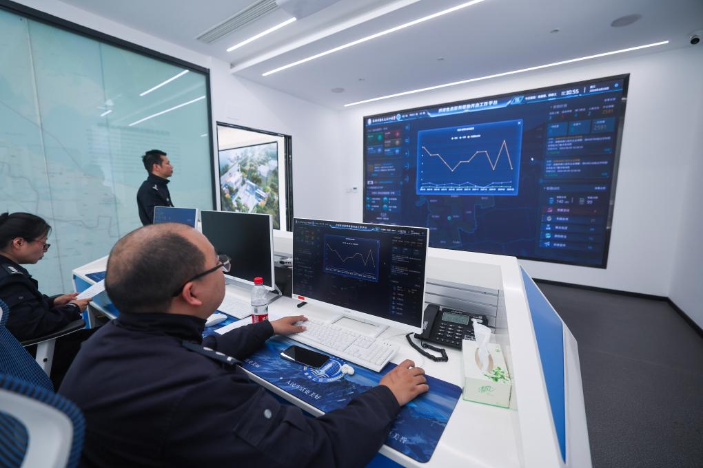 在位于浙江湖州的喬溇生態(tài)警務(wù)聯(lián)勤共治工作站里,值班民警通過智能化監(jiān)控平臺對太湖水質(zhì)環(huán)境進(jìn)行實(shí)時(shí)監(jiān)測。新華社記者徐昱 攝