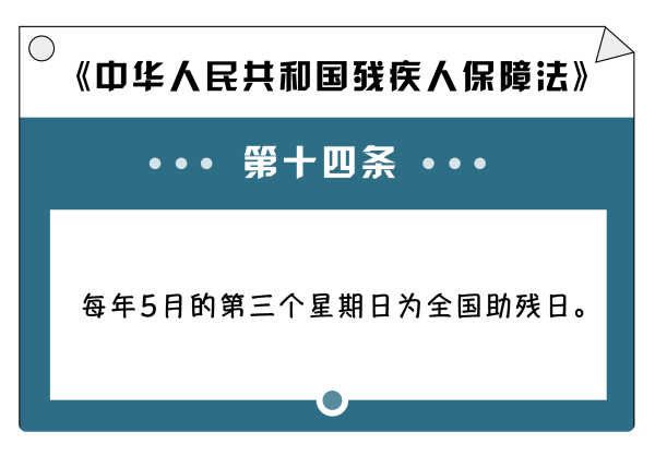 《中華人民共和國(guó)殘疾人保障法》第十四條規(guī)定,每年5月的第三個(gè)星期日為全國(guó)助殘日。