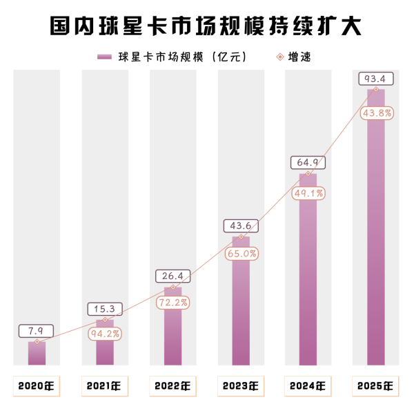 從艾瑞咨詢發(fā)布的數(shù)據(jù)來看,2024年,中國球星卡行業(yè)市場規(guī)模將達(dá)到64.9億元,相比2023年增長49.1%,預(yù)計(jì)在2025年其市場規(guī)模將突破90億元。