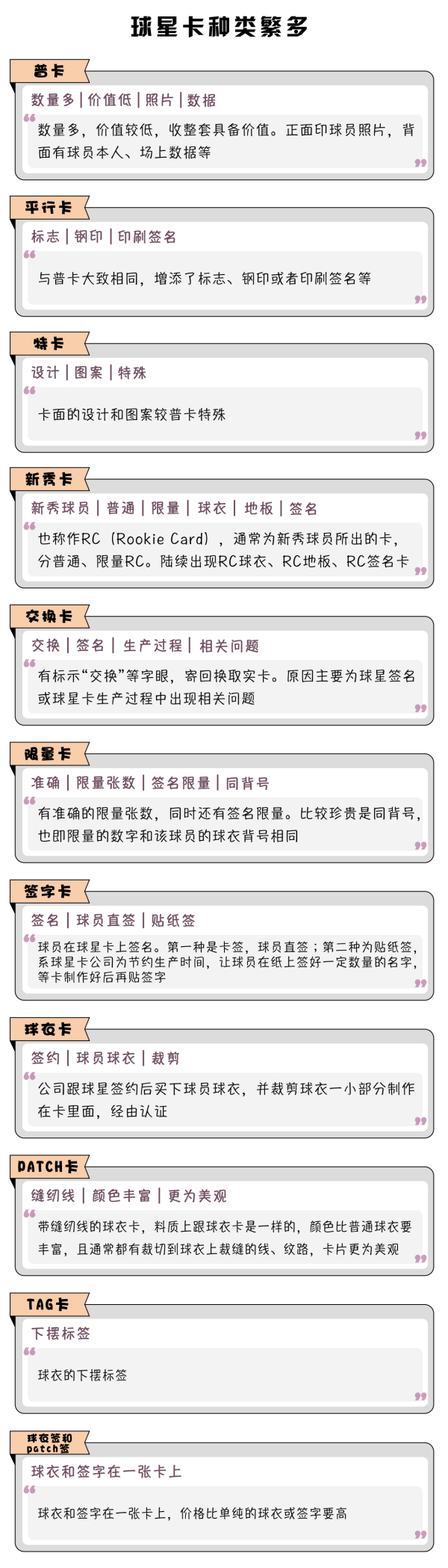 球星卡涉及籃球、足球、棒球等領(lǐng)域,卡片種類繁多,包括普卡、平行卡、特卡、新秀卡、交換卡、限量卡、簽字卡等,為具有不同需求的消費(fèi)者提供了多種選擇。