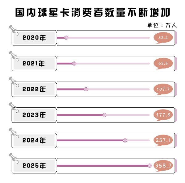 同時(shí),國內(nèi)球星卡消費(fèi)者數(shù)量不斷增加,2024年,國內(nèi)球星卡消費(fèi)者人數(shù)預(yù)計(jì)達(dá)到257.1萬人,預(yù)計(jì)2025年國內(nèi)球星卡消費(fèi)者人數(shù)將升至358.7萬。