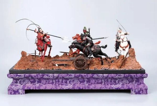 為了讓面塑順利“數(shù)字化”,郎佳子彧還創(chuàng)新改變了一些制作流程。比如,角色手握的兵器,老藝人都是制作完成后直接組合,現(xiàn)在為了方便細(xì)節(jié)掃描,需要提前預(yù)留手部握兵器的位置,風(fēng)干后再放回到角色手里?!按送?,由于待掃描的‘零件’做出來不能立即安裝并固定于沙盤場景中,所有人物的動(dòng)作、神態(tài)都要預(yù)先在腦海中構(gòu)思成熟。這對我復(fù)刻的技術(shù)提出了新的要求。完成《三英戰(zhàn)呂布》的復(fù)刻與數(shù)字化,我花費(fèi)了整整30天?!崩杉炎訌f。
