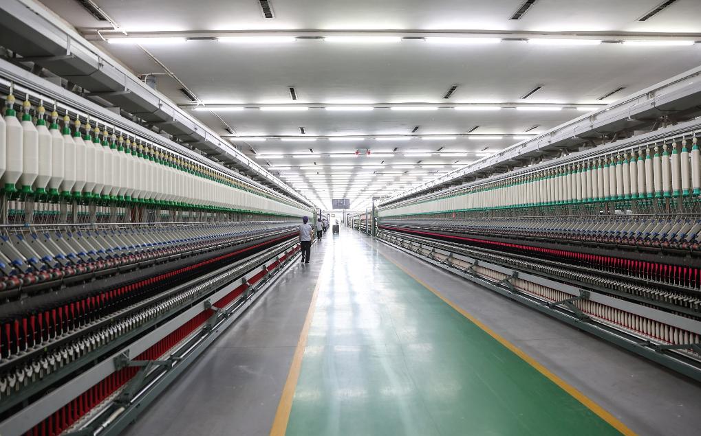 圖為無(wú)錫一棉紡織集團(tuán)有限公司的特高支緊密紡智能制造車間。新華社記者 楊磊 攝
