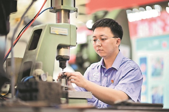 楊國(guó)心在生產(chǎn)廠加工零件產(chǎn)品。陳陽(yáng) 攝
