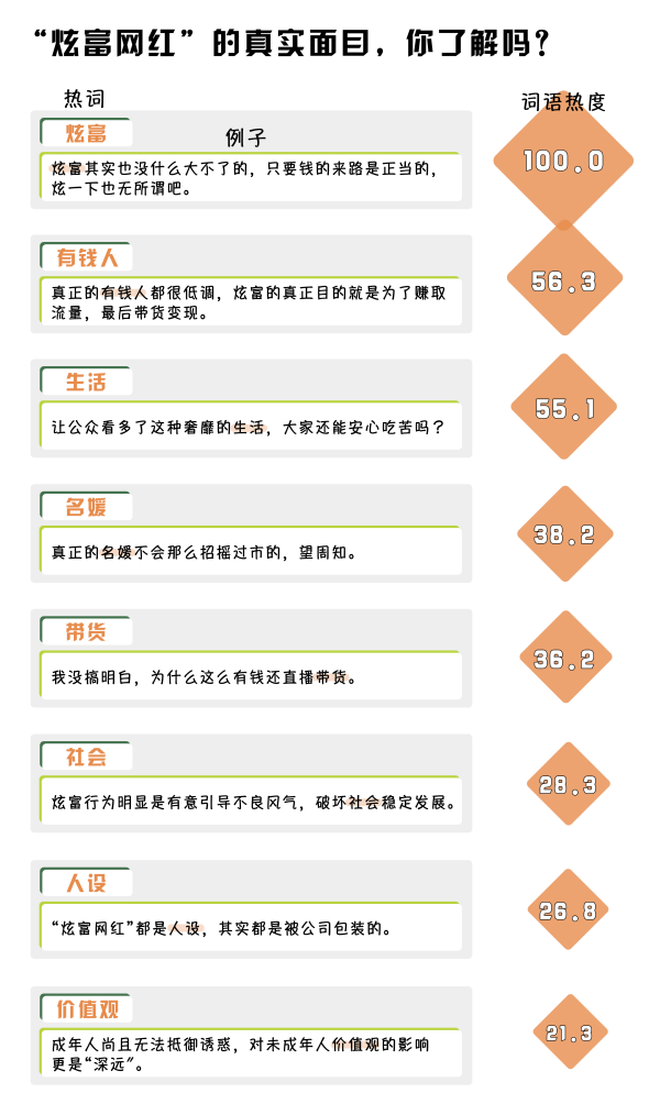 近期,多位“炫富網(wǎng)紅”被抖音、小紅書等平臺(tái)封禁,引發(fā)輿論廣泛關(guān)注?!办鸥痪W(wǎng)紅”究竟“炫”了什么?其背后的用意和真正的目的是什么?下面,讓我們一探究竟!