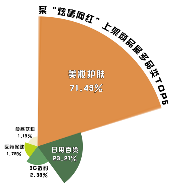 2.“炫富網(wǎng)紅”帶貨品類中,美妝護(hù)膚最賺錢