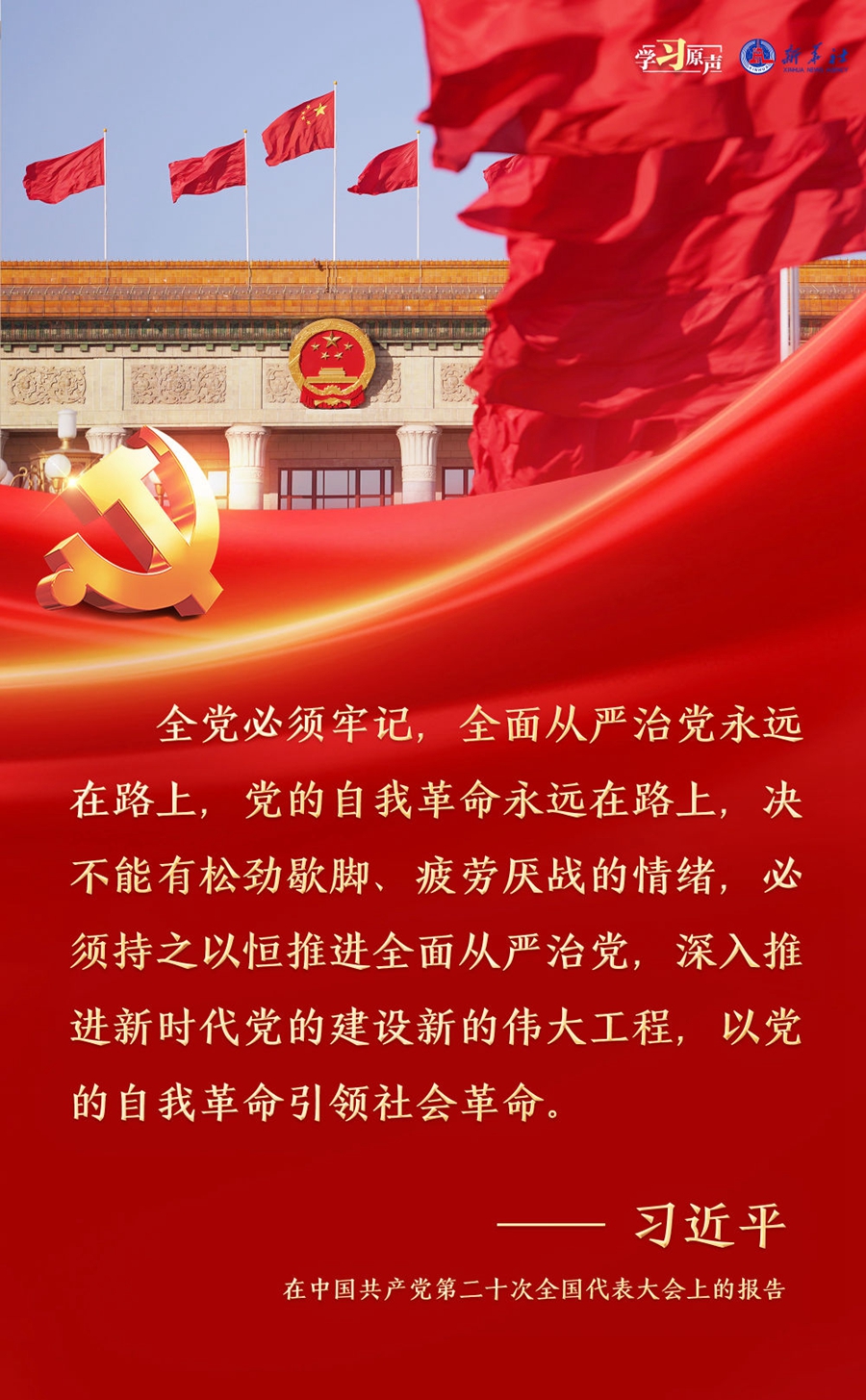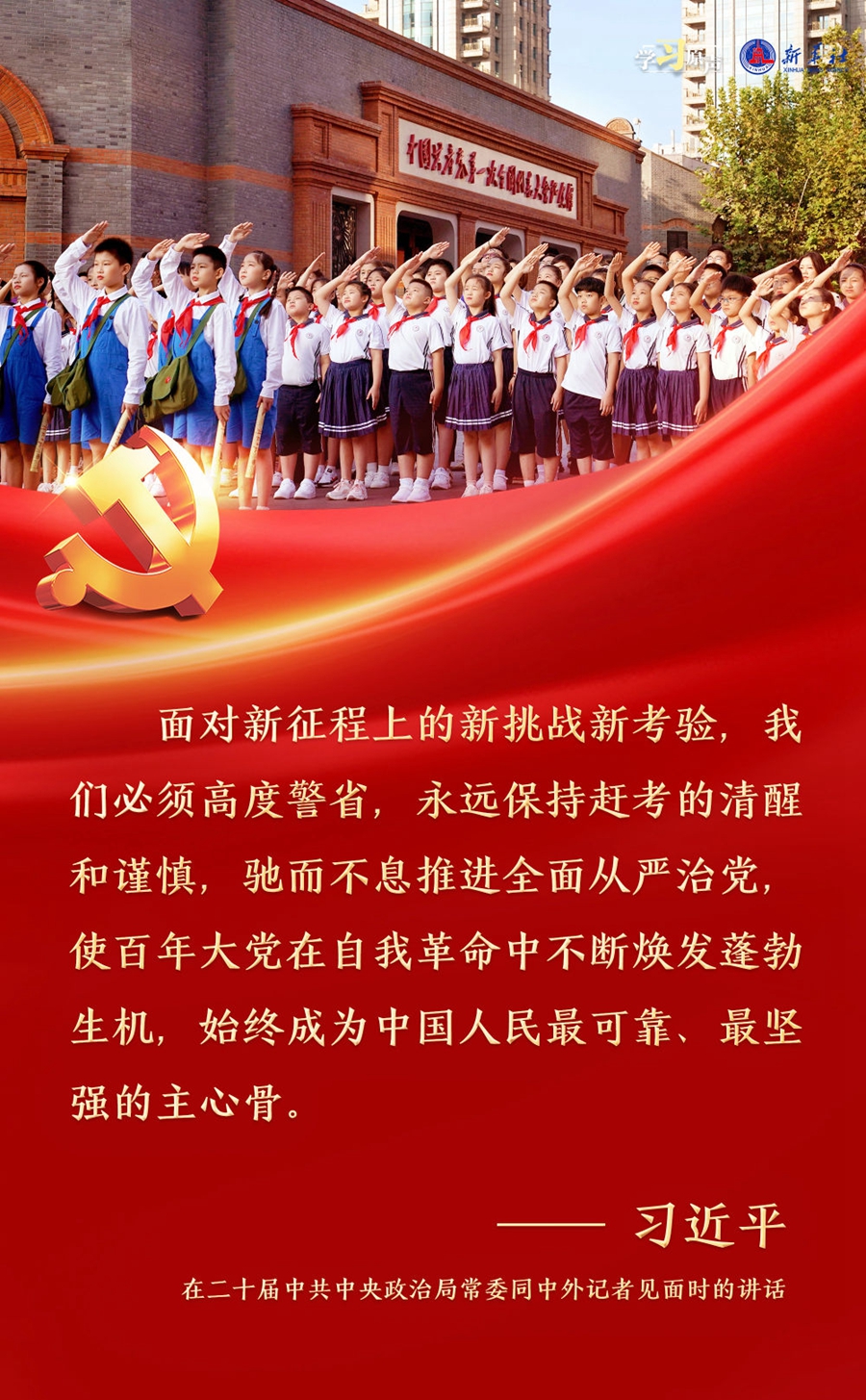 習(xí)近平總書記強(qiáng)調(diào),面對新征程上的新挑戰(zhàn)新考驗(yàn),我們必須高度警省,永遠(yuǎn)保持趕考的清醒和謹(jǐn)慎,馳而不息推進(jìn)全面從嚴(yán)治黨,使百年大黨在自我革命中不斷煥發(fā)蓬勃生機(jī),始終成為中國人民最可靠、最堅(jiān)強(qiáng)的主心骨。