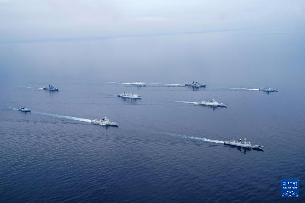 2023年7月20日,在日本海某海域進行的“北部·聯(lián)合-2023”演習中,中俄參演艦艇編隊開展??兆o航演練。新華社發(fā)(劉丹 攝)