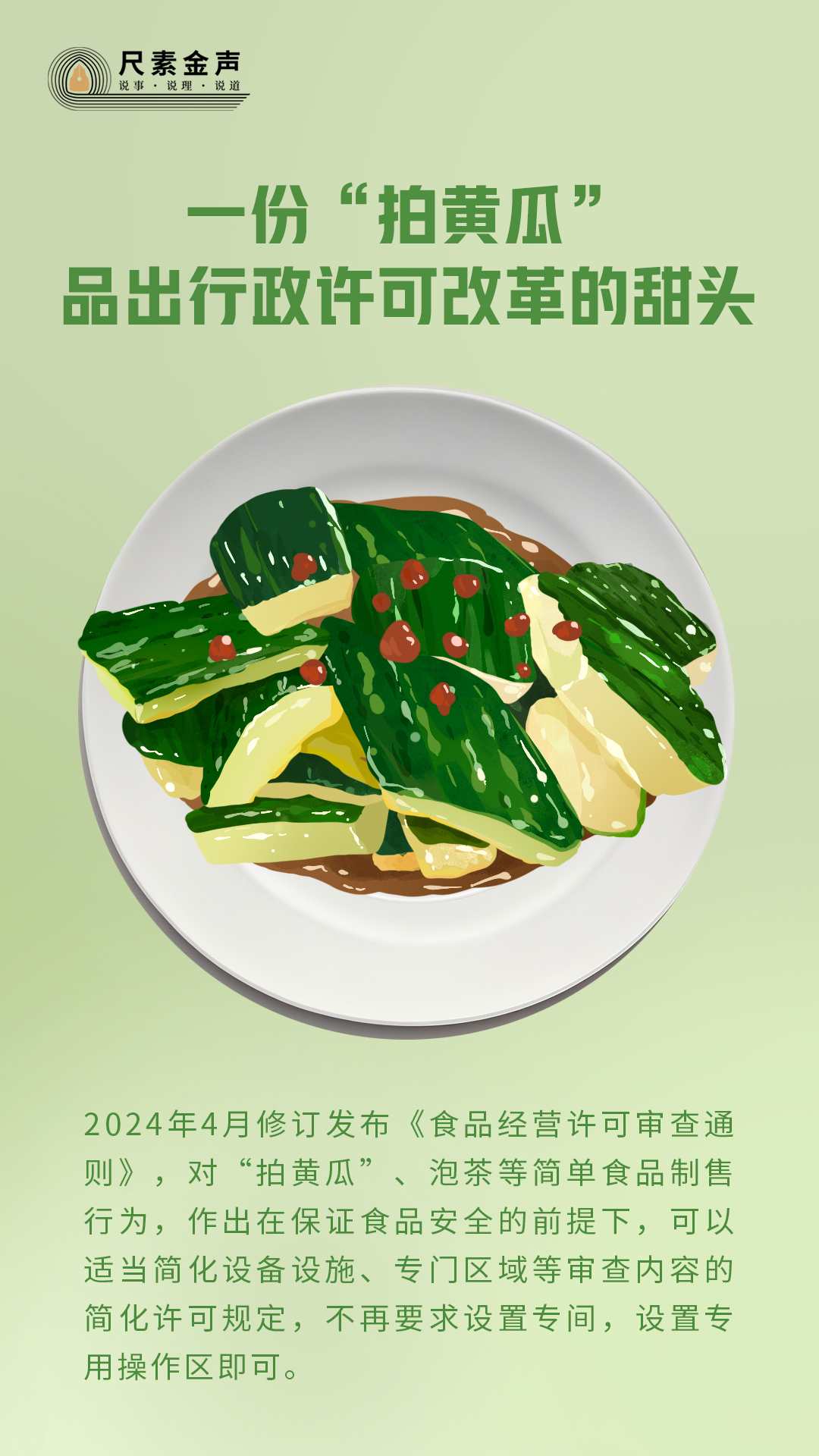 結(jié)合餐飲業(yè)實際,考慮中小經(jīng)營主體和消費者的訴求,科學(xué)評估食品安全風(fēng)險,去年6月,市場監(jiān)管總局修訂發(fā)布《食品經(jīng)營許可和備案管理辦法》,今年4月修訂發(fā)布《食品經(jīng)營許可審查通則》,對“拍黃瓜”、泡茶等簡單食品制售行為,作出在保證食品安全的前提下,可以適當(dāng)簡化設(shè)備設(shè)施、專門區(qū)域等審查內(nèi)容的簡化許可規(guī)定,不再要求設(shè)置專間,設(shè)置專用操作區(qū)即可。各地市場監(jiān)管部門立足當(dāng)?shù)貙嶋H優(yōu)化“拍黃瓜”經(jīng)營許可條件,相繼出臺相關(guān)食品經(jīng)營許可和備案管理實施細(xì)則。比如,修訂的《上海市食品經(jīng)營許可和備案管理實施辦法》已于5月10日正式實施,明確加工制作植物性冷食類食品(不含非發(fā)酵豆制品),可申請簡單制售經(jīng)營項目,在保證食品安全的前提下,可僅設(shè)置專區(qū)。