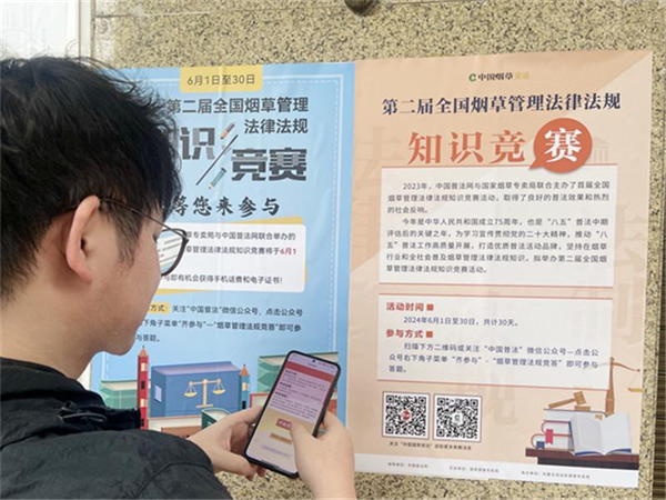 為推動“八五”普法走深走實,浙江省溫州市煙草專賣局以全國煙草管理法律法規(guī)知識競賽活動為契機(jī),創(chuàng)新普法宣傳形式,打造員工、零售戶、消費(fèi)者共同參與的立體化普法矩陣,持續(xù)提升普法“輻射面”,繪好普法“風(fēng)景線”,在全市掀起煙草專賣法律法規(guī)學(xué)習(xí)活動熱潮,助力營造全社會尊法學(xué)法守法用法的良好法治氛圍。